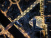 La vision «lointaine» : un pointillisme lumineux vient accentuer les avancées supérieures du bâtiment, véritable accroches visuelles à grande perspective.