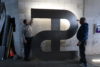 - Een (warm witte) achtergrondverlichting om de sculptuur ‘los te maken’ van de muur (die grijs geverfd is) • Een (neutraal witte) asymmetrische verlichting vanaf het plafond om het matte, geborstelde rvs te benadrukken.